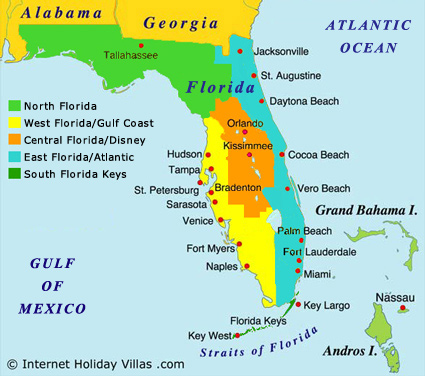 Gulf Coast, East Florida Atlantic Coast, South Florida Keys or North